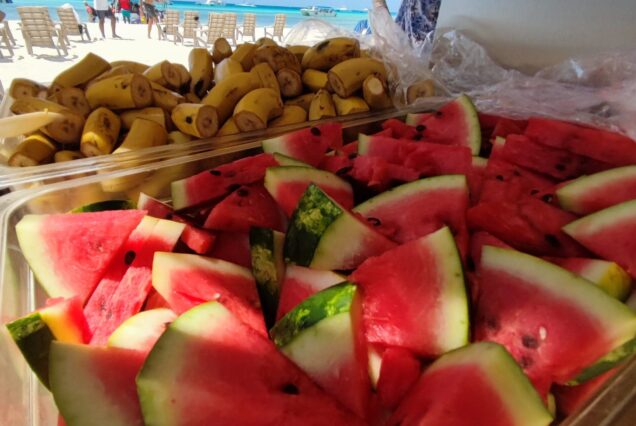 Continuando navegando hacia el canal de catuano, donde se puede ver la separación de La Española y la Isla Saona hasta llegar a nuestra paradisiaca playa, en donde se disfrutará de música, almuerzo y brindis (ron, cerveza, agua).